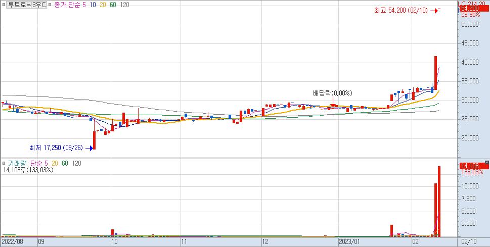 5. 루트로닉3우C ( 08537M / 코스닥 ) - 현재가 54,200원