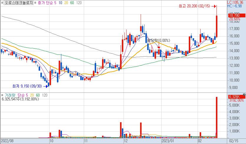 2. 오로스테크놀로지 ( 322310 / 코스닥 ) - 현재가 18,790원