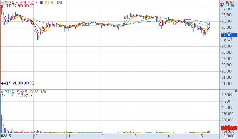 오늘 신규상장 첫날인 샌즈랩은 장중 따상에 성공하는 듯 보였으나 상한가인 27,300원을 찍고 내려왔습니다.