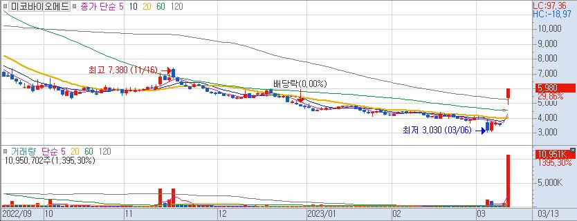 1. 미코바이오메드 ( 214610 / 코스닥 ) - 현재가 5,980원