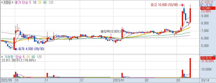 3. KBG ( 318000 / 코스닥 ) - 현재가 10,040원
