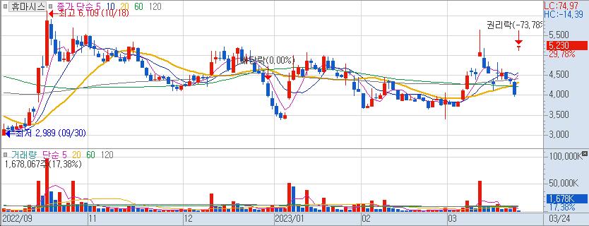 6. 휴마시스 ( 205470 / 코스닥 ) - 현재가 5,230원