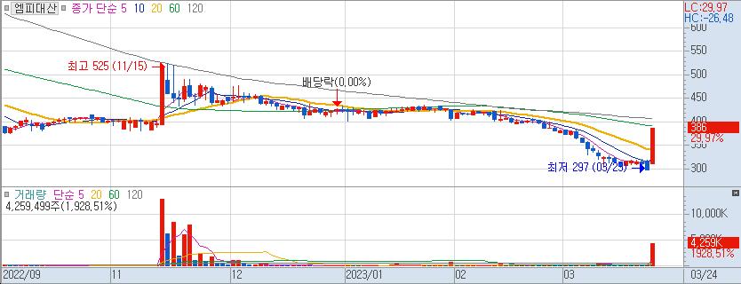 2. 엠피대산 ( 065150 / 코스닥 ) - 현재가 386원
