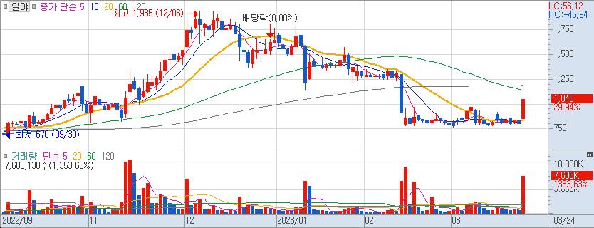 4. 일야 ( 058450 / 코스닥 ) - 현재가 1,046원