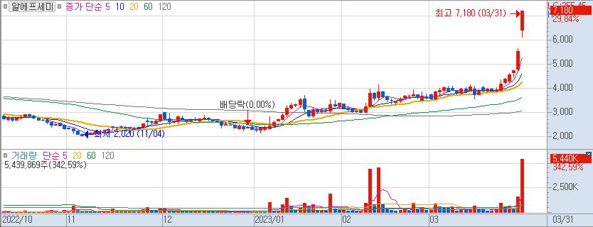 3. 알에프세미 ( 096610 / 코스닥 ) - 현재가 7,180원