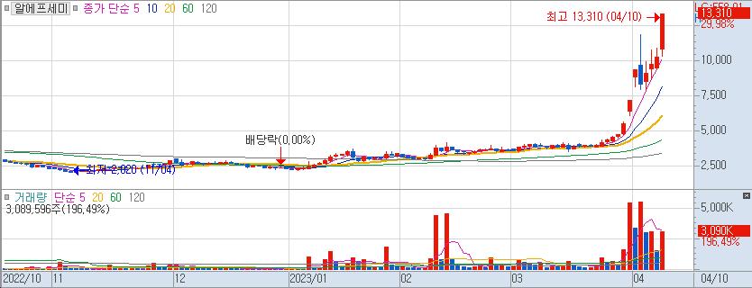 3. 알에프세미 ( 096610 / 코스닥 ) - 현재가 13,310원