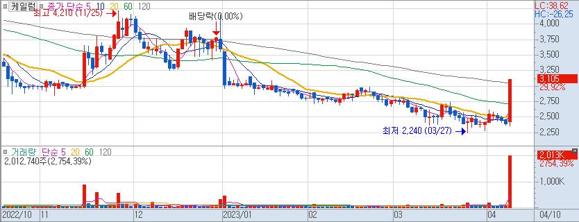 4. 케일럼 ( 258610 / 코스닥 ) - 현재가 3,105원