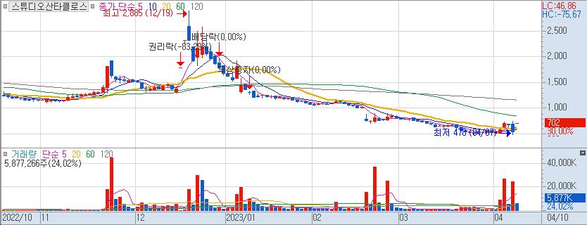 2. 스튜디오산타클로스 ( 204630 / 코스닥 ) - 현재가 702원