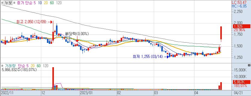 상승률 +29.96% / 거래량 8,936,386 / 거래대금 20,394백만 / 시가총액 1,204억